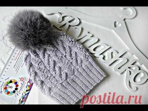 Вяжем шапку с ажурным узором спицами. Шапка спицами.Мастер класс. Вязание.Рынашко