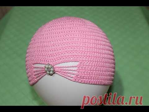 Шапочка крючком на девочку с декором "Бабочка" (на объем головы 48-50см).