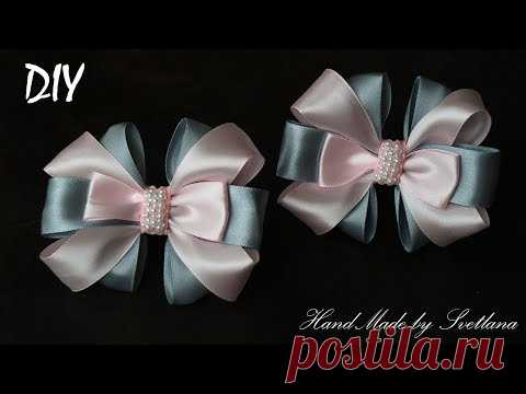 Бантики из лент для школы Канзаши DIY Kanzashi bow of ribbon Curva da fita Baugen av bånd 4