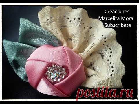 Tocado en flor de tela pequeño. Little fabric flower brooch.