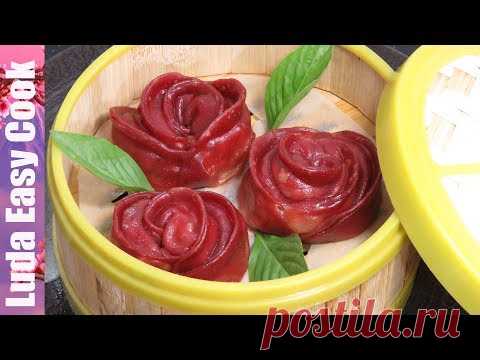 КИТАЙСКИЕ ПЕЛЬМЕНИ РОЗОЧКИ Цветные Пельмени на ПАРУ Вкусно и Красиво | Rose Dumplings Chinese