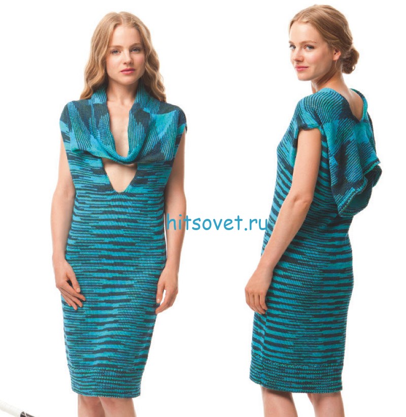 Вязаное платье для женщин - Хитсовет Вязаное платье для женщин. Модное красивое платье бирюзового цвета с бесплатным описанием вязания. Вам потребуется: 500/550/600 грамм бирюзовой пряжи LANG YARNS SERAINA (модал, полиамид), спицы № 5 и № 5,5.