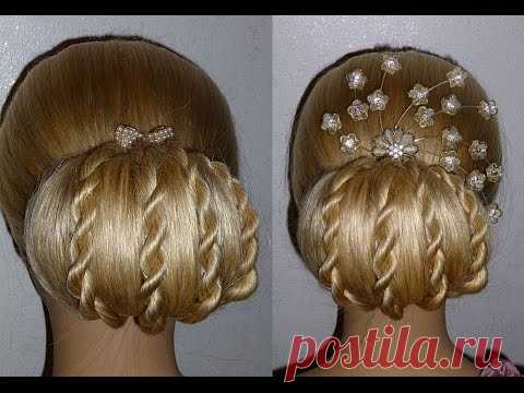 Причёска на выпускной, вечерняя/свадебная причёска Пучок из волос на средние, длинные волосы