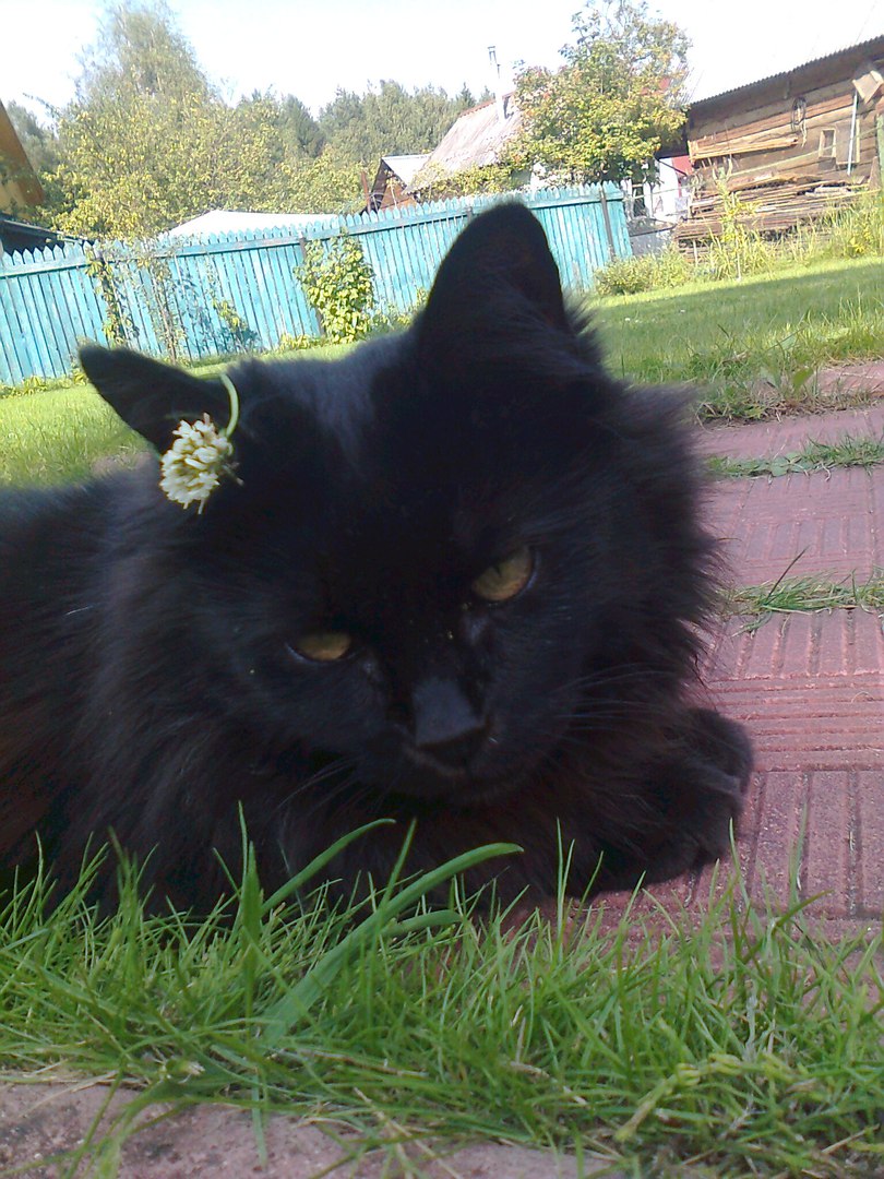 Вот наша Муська. Подобрали ее на улице на даче три года назад. Она привязалась к нам и мы на зиму решили взять ее в квартиру. Так и осталась у нас наша чернушка Муся.
