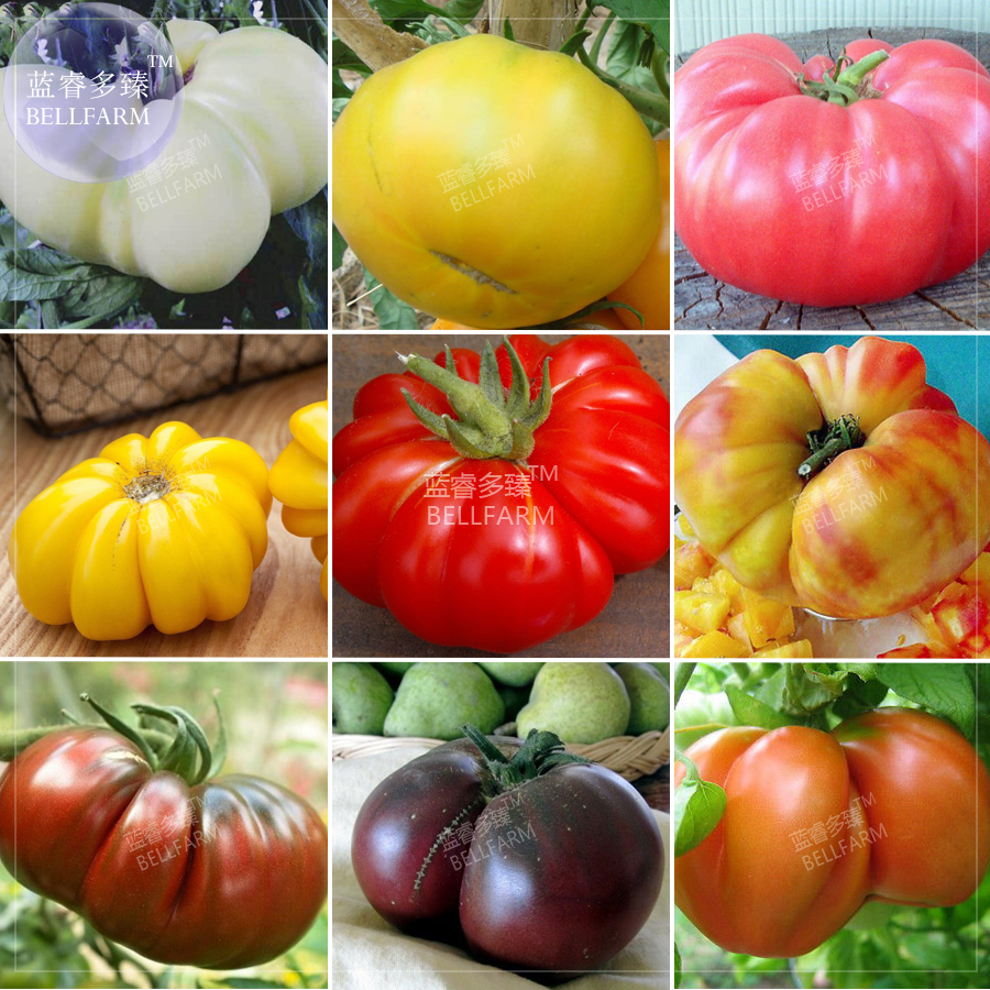 Bellfarm томатный смешанные гигантский семена овощных культур, 100 Семена, белый цвет красный, желтый розовый Радуга Черный Серый Organic Томатный купить на AliExpress