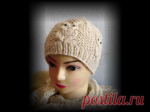 Шапочка с узором сова спицами по кругу Вяжем с Людмилой Тен