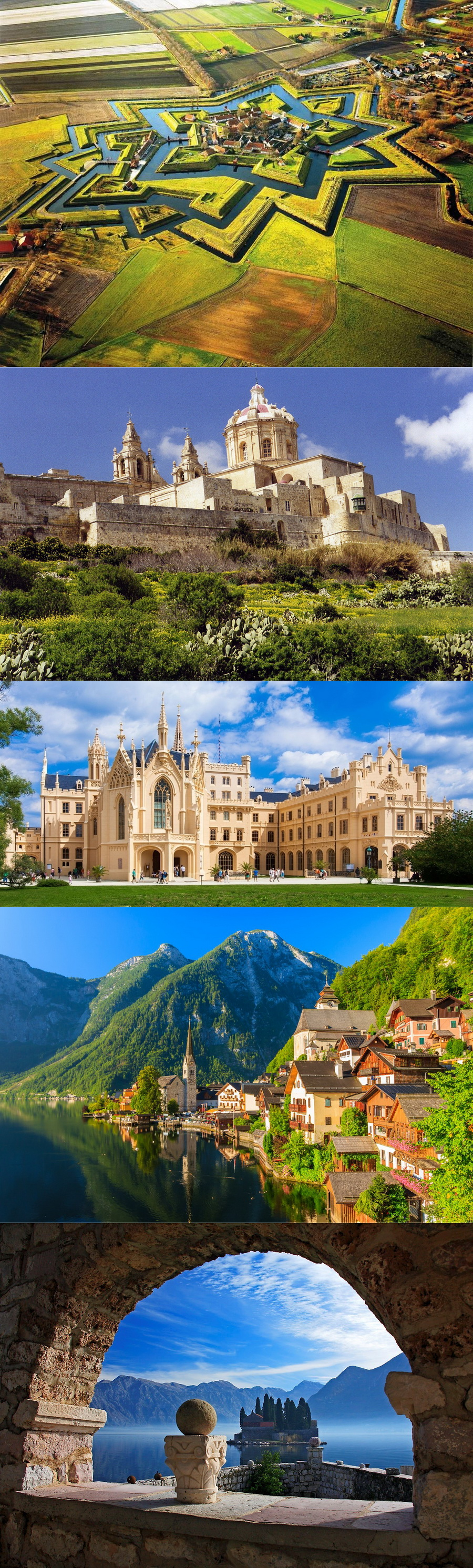 Малоизвестные достопримечательности Европы - Город-крепость в форме звезды, один из немногих уцелевших голландских бастионов и единственная крепость в Европе с уникальными двойными стенами и рвами. Город Мдина — один из самых загадочных городов Мальты. Сами мальтийцы называют это место «Молчаливым городом». Ландшафтный комплекс в Чехии (Моравия), включенный в список всемирного наследия ЮНЕСКО. Историческая область в Австрии к востоку от Зальцбурга. Настоящий живописный озерный край.