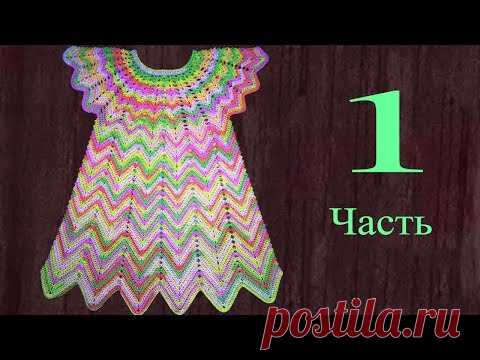 Летнее цветное платье 3-5 лет. 1 часть. Кокетка. Knit a beautiful dress hook.