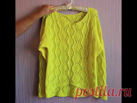 Как связать женский свитер ажурным узором и укорочеными рядами Pullover for women
