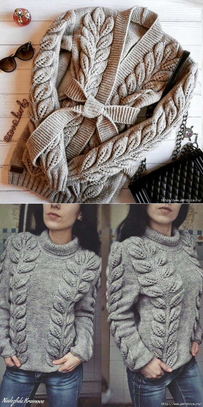 Кардиган спицами узоров ветка с листьями