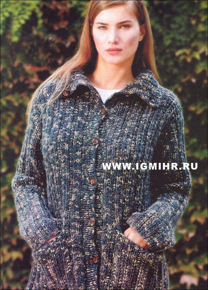 Удобный теплый жакет из меланжевой пряжи для полной дамы. Спицы