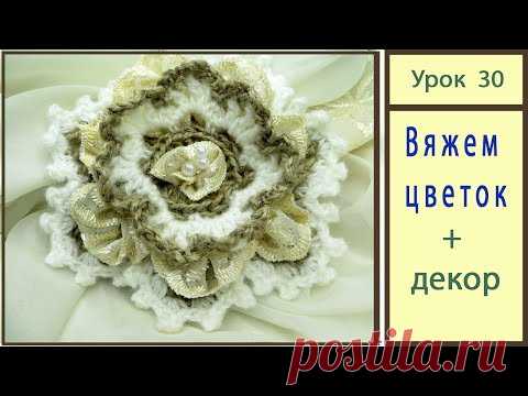 Цветок крючком. Вязание цветка и декор. Crochet flowers. Урок 30