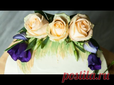 Двухъярусный торт с живыми цветами. Как собрать и украсить