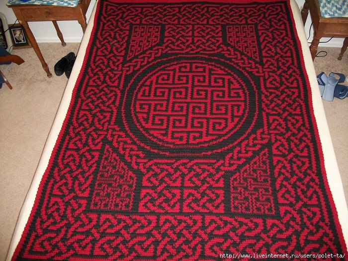 ПЛЕД,ПОКРЫВАЛО С КЕЛЬТСКИМИ УЗОРАМИ.ЖАККАРД КРЮЧКОМ.