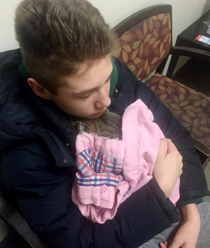 Кота выбросили из движущегося фургона. Парень мигом бросился спасать животное…