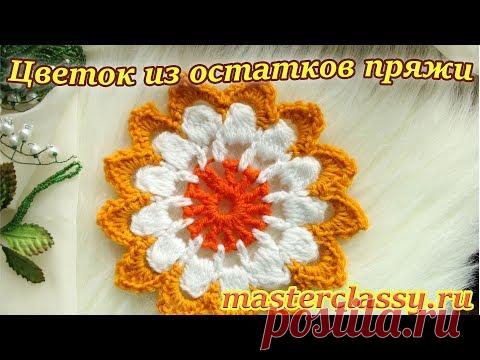 Что связать из остатков пряжи? Красивый цветочный мотив крючком: видео урок