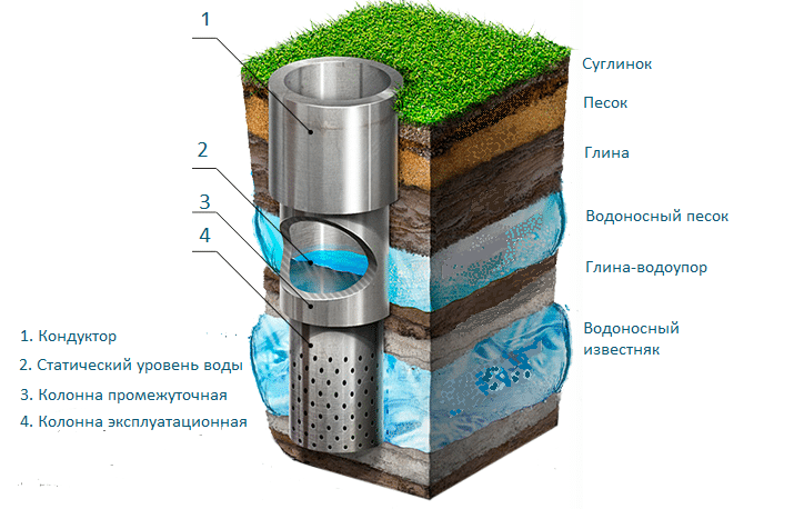 Артезианская скважина, её продолжительности в эксплуатаций, может быть вплоть до 50лет. Что бы спустя годы, вода в скважине не теряла своё качество, применяют специальные материалы на основе полимеров.