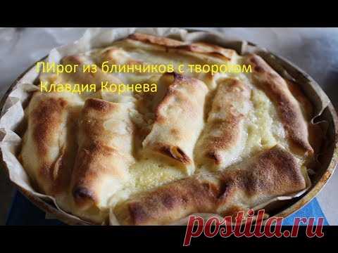 Пирог из блинчиков с творогом и карамелизованными яблоками