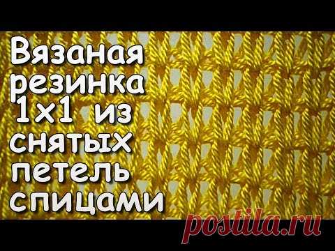 Вязание спицами. МК: Резинка 1х1 из снятых петель - Knitted elastic stitch 1x1