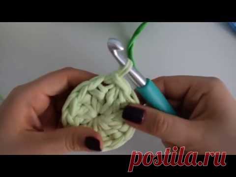 Вяжем самую простую корзинку из трикотажной пряжи