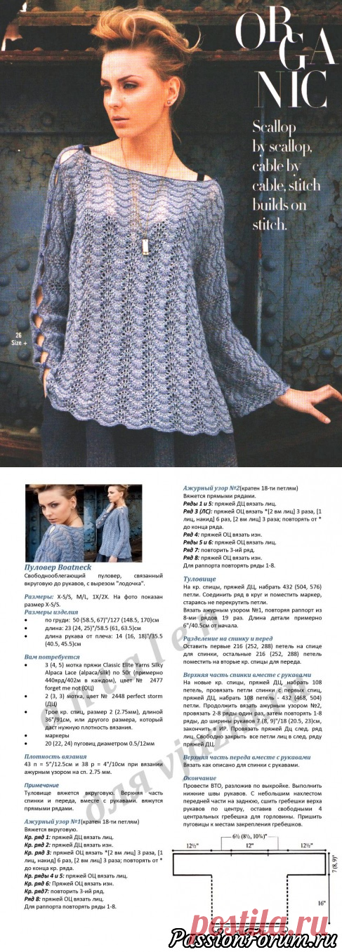 Женский вязаный пуловер спицами с волнистым узором Павлиний хвост - запись пользователя Лисик (Светлана) в сообществе Вязание спицами в категории Вязание для женщин спицами. Схемы вязания спицами