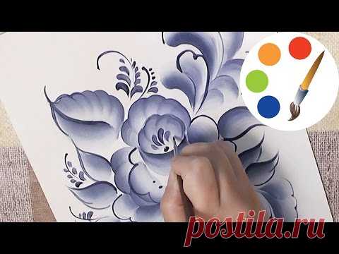 Painting Gzhel with an acrylic paint and a flat brush, irishkalia
