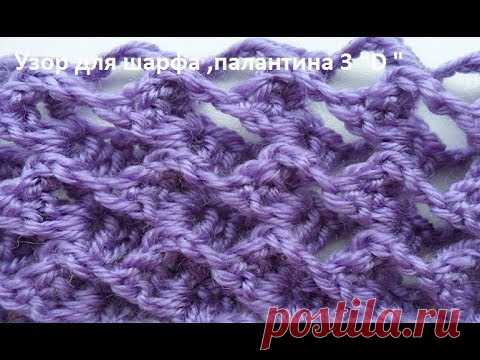 Узор крючком 3" D " для шарфа палантина ,crochet beautiful pattern( узор № 150)