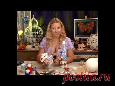 Декупаж. Декорируем новогодние подарки: шар для елки и бутылку шампанского. Мастер-класс