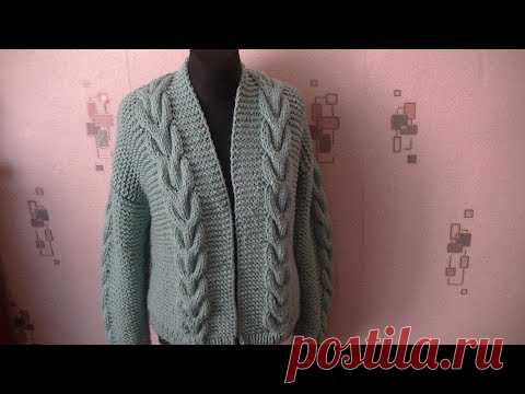 Вяжем объёмный кардиган с косами. /Бомбер спицами.