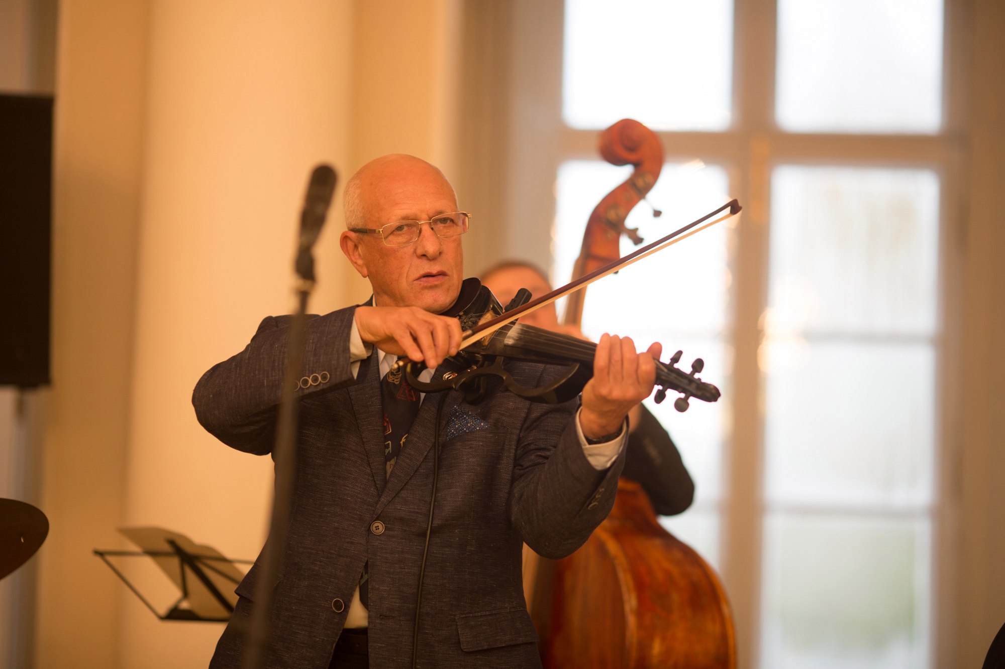 Играет на таких инструментах, как скрипка, фортепиано, флюгельгорн, саксофон, контрабас, вибрафон, ударные.