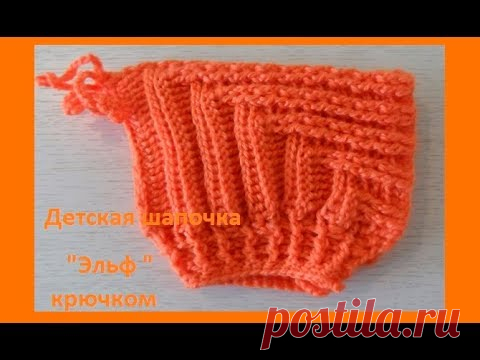 Детская шапочка "Эльф" крючком (бэби № 54)