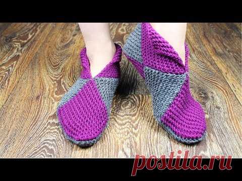 Вязание спицами. Простые тапочки из квадратов🔔🔔🔔