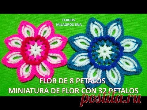Flor tejida a crochet de 8 pétalos paso a paso miniatura de Flor con 32 pétalos - YouTube