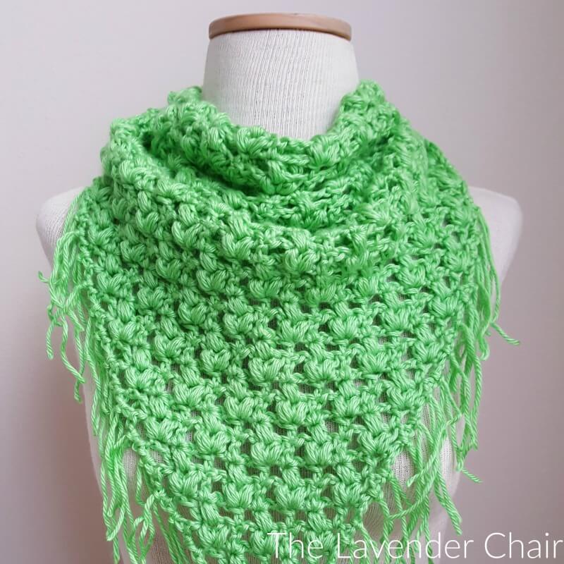 Clover Puff Triangle Scarf Crochet Pattern - The Lavender Chair This gorgeous Clover Puff Triangle Scarf is one of the many designs featured in The Clover Puff Collection. You won’t get pinched wearing this green beauty on St. Patrick’s Day :). Add this pattern to your favorties on Ravelry Purchase the PDF version on Etsy Materials: Light Worsted Weight Yarn H 5.00mm Crochet Hook …