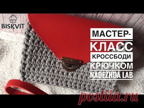Кроссбоди крючком с кожаным клапаном. Сумочка из трикотажной пряжи
