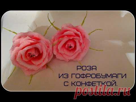 Роза из гофрированной бумаги с конфеткой.