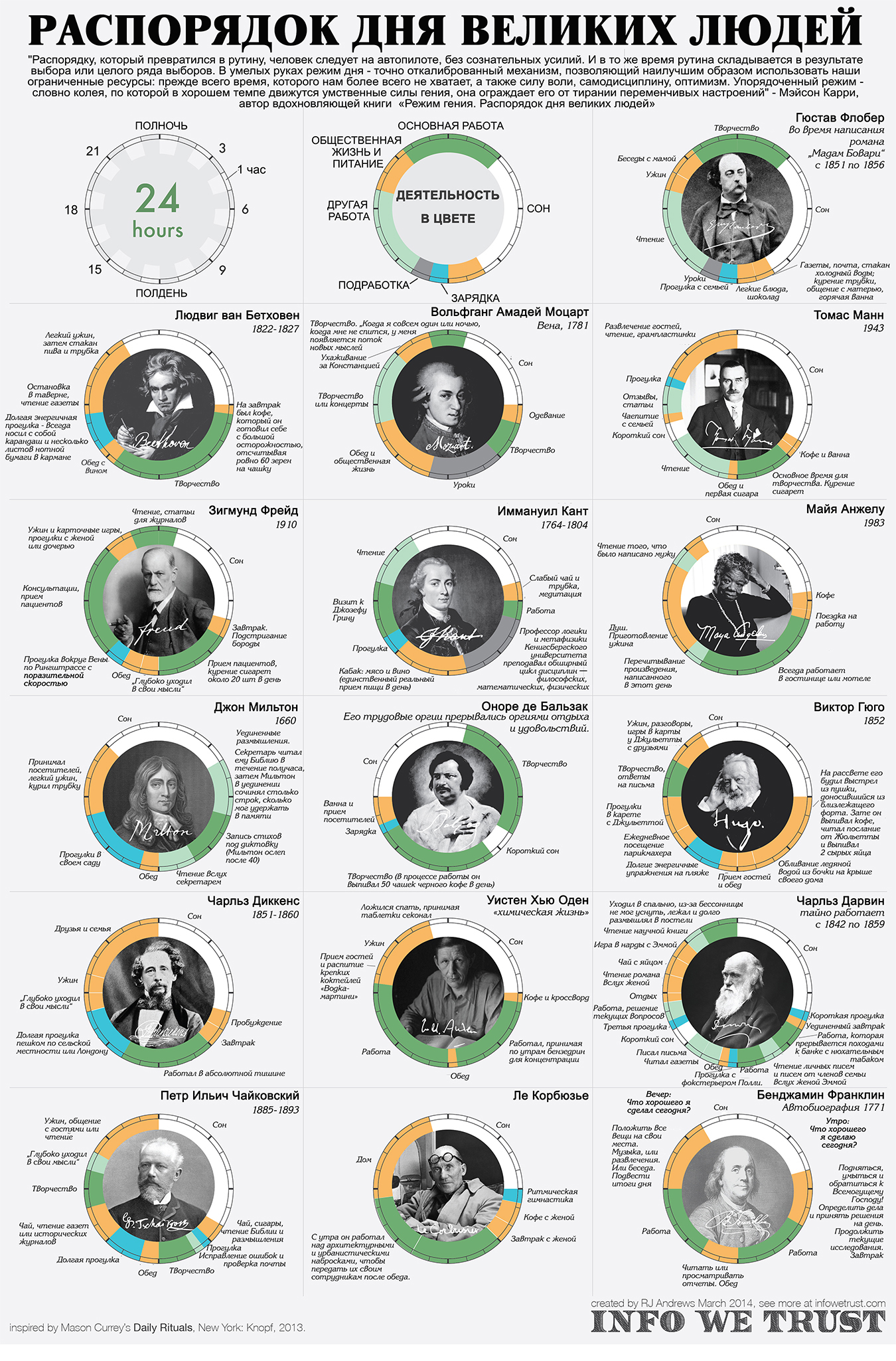 ИНФОГРАФИКА: Распорядок дня великих людей - Лайфхакер