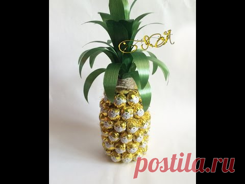 Ананас из конфет и шампанского. Подарок на Новый год. Мастер - класс.