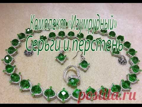 (186) Серьги и перстень. Комплект "Изумрудный". - YouTube