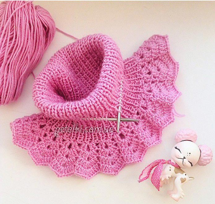 Манишка для девочки. Спицы + крючок. Описание, схема вязания