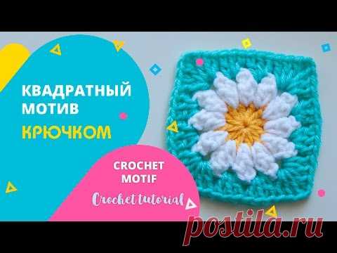 Квадратный мотив крючком с ромашкой. Crochet tutorial. Popkorn