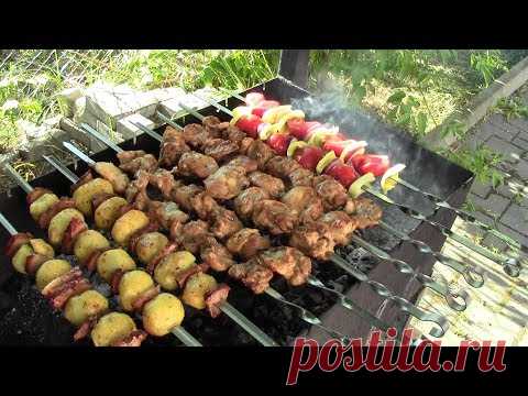 Шашлык из курицы. Как замариновать. Картошка гриль с беконом