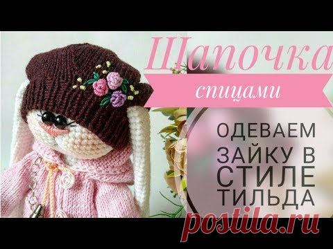 Шапочка-берет спицами/ Одеваем зайку в стиле тильда🐰