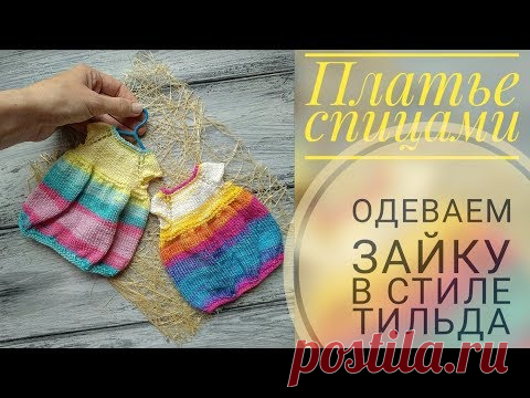 Платье спицами/ Одеваем зайку в стиле тильда🐰