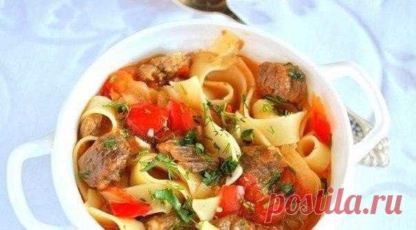 ВКУСНЕЙШИЙ ЛАГМАН ИНГРЕДИЕНТЫ: ● 1,5 литра мясного бульона; ● 500 г телятины; ● 300 г лапши; ● 2 сладких перца; ● 2 больших помидора; ● 1 большая луковица; ● 2-3 зубчика чеснока; ● маленький пучок петрушки; ● 3-4 ст. л. растительного масла; ● соль, свежемолотый черный перец. ПРИГОТОВЛЕНИЕ: Перец, помидоры, лук очистить и нарезать кубиками. Мясо нарезать небольшими кубиками.В глубокой сковороде сильно разогреть растительное масло. На сильном огне обжарить мясо (лучше пор...