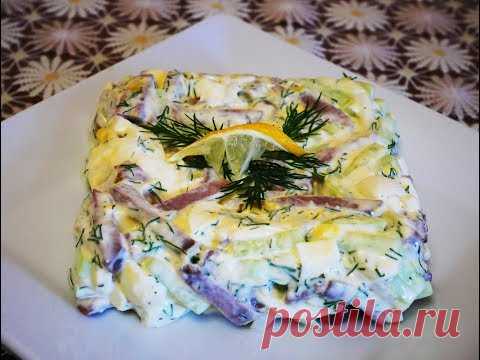 Салат РЕЦЕПТ салат с ЯЗЫКОМ и свежим ОГУРЦОМ Салаты на праздничный стол Салаты рецепты