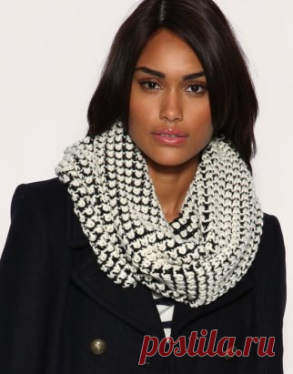 🌂Шикарный черно-белый снуд Связать прямоугольник - 90 петель рисунок и в длину 75 см ,а потом его сшить . Узор - букле двухцветное : 1-й ряд - чёрная нить - 1 лиц. 1 изн. 2-й ряд- белая нить - 1 лиц...