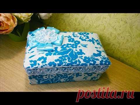 Декорирование обувной коробки. Шкатулка из обувной коробки . Как обтянуть коробку тканью.