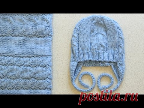 ШАПКА С УШКАМИ СПИЦАМИ НА ВОЗРАСТ 0-3 мес. КОМПЛЕКТ: ПЛЕД "BLU CLASSICO", ШАПКА С УШКАМИ И ПИНЕТКИ