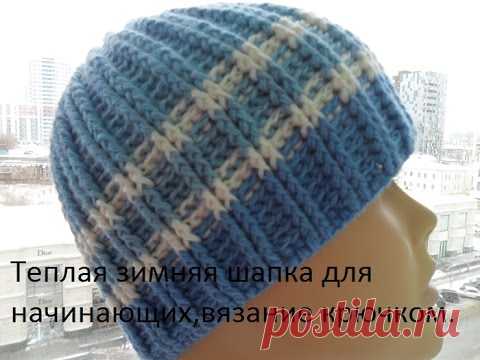 Теплая зимняя шапка для начинающих,рельефными столбиками.Warm winter hat Crochet for beginners .#45